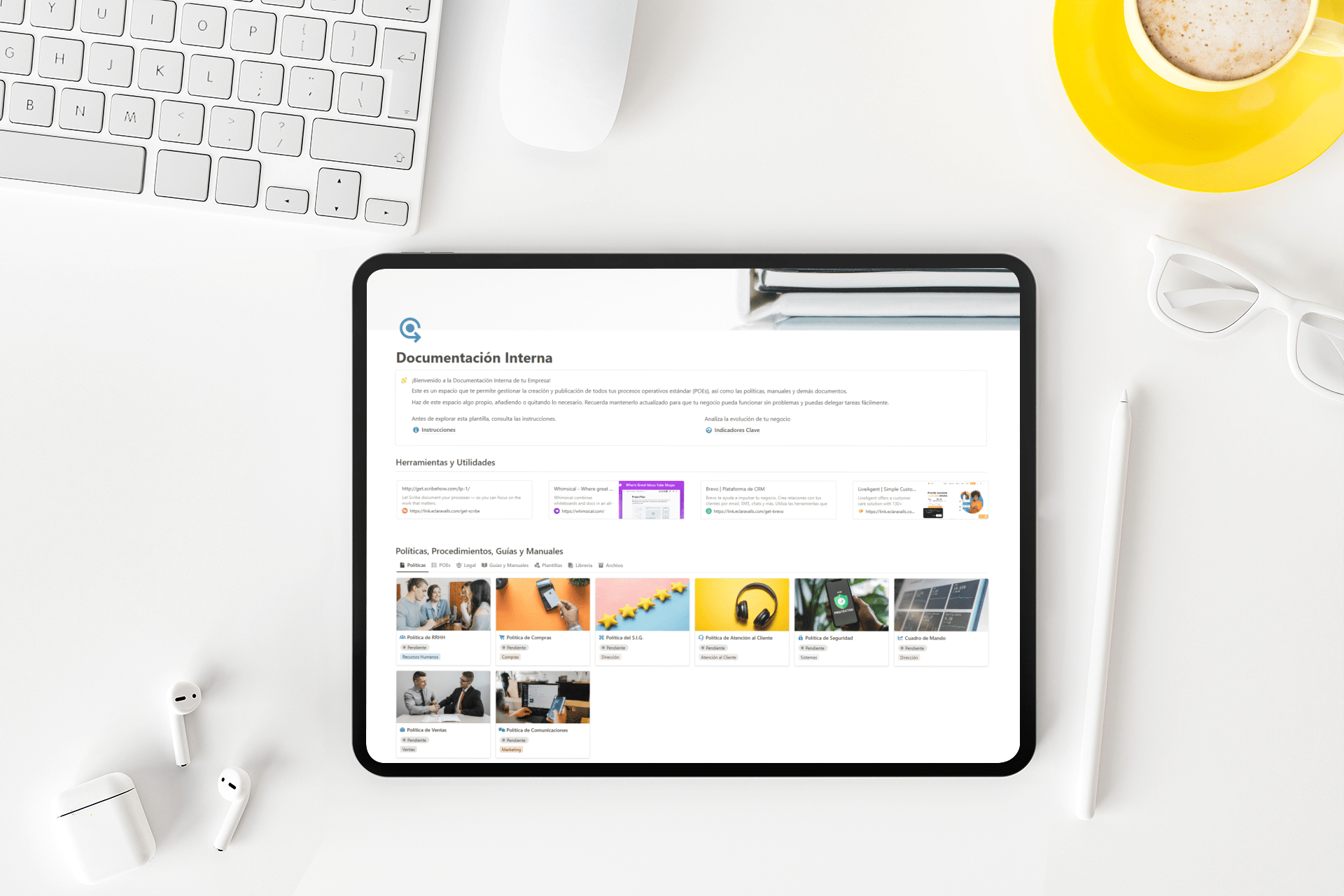 Un espacio donde documentar y compartir todos los manuales, procedimientos operativos estándar (POE), políticas, requisitos legales y biblioteca de tu empresa.